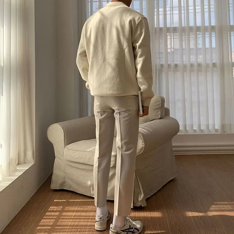 Un design minimaliste au raffinement discret, inspiré de la mode coréenne contemporaine. Ce pull marie textures soyeuses et élégance intemporelle, parfait pour des soirées d’hiver sophistiquées.