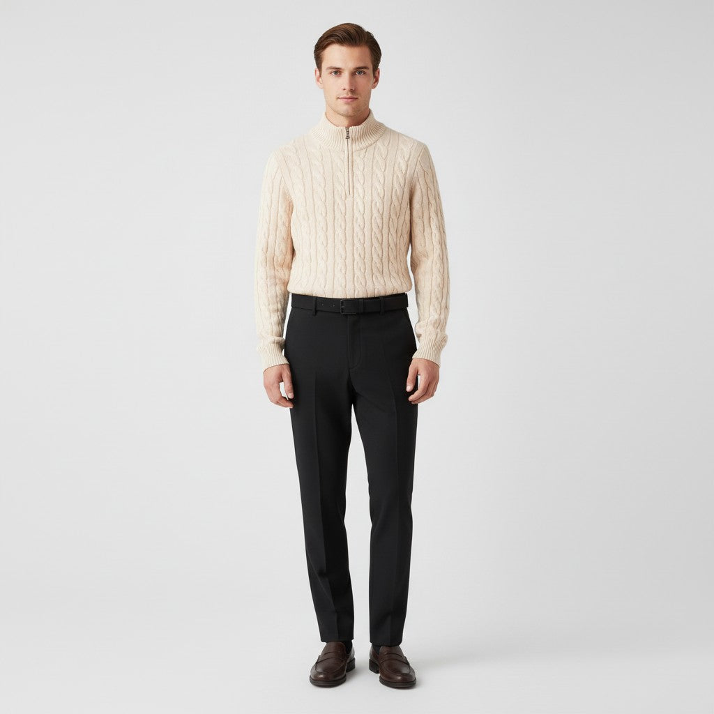 Choose a style that stands out at first glance with this zip-up mock-neck sweater. Its refined finish and high collar give it an elegant, timeless look.